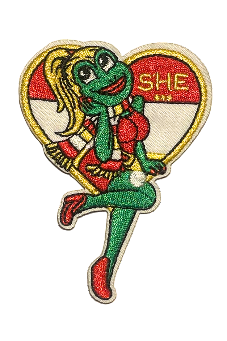 Op dit embleem zie je een vrouwelijke Oetel die zit in een hartje, gevormd door de kleuren van de Oeteldonkse vlag.